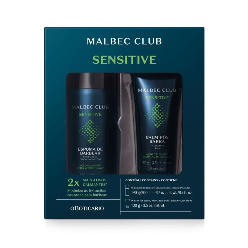 • Bálsamo Pós-Barba Sensitive: ideal para aplicar imediatamente após o barbear. Tem efeito refrescante, acalma, hidrata e ajuda a minimizar a vermelhidão ou o desconforto. Contém ingredientes como extrato de semente de uva, gengibre e bisabolol, que atuam como antioxidantes e acalmam a pele sensível.